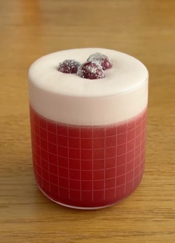 Geben Sie alle Zutaten in einen Cocktailshaker und shaken Sie erst einmal ohne Eis – so entsteht der schöne Schaum. Dann Eis hinzufügen und erneut kräftig shaken. Am besten in eine Coupette abseihen – ein spezielles Cocktailglas, das eine bauchige, runde Schale auf einem Stiel hat – und mit den kandierten Cranberrys garnieren. Andere Gläser gehen aber natürlich auch.
